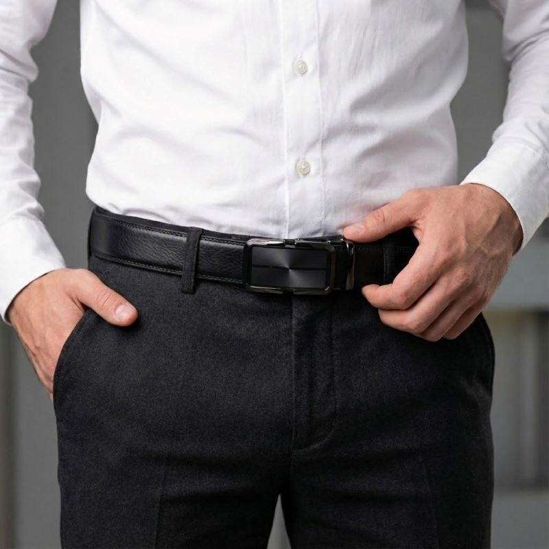 Мъжки автоматичен колан без отвори, изработен от висококачествена естествена цепена кожа (split leather). С ширина 3.5 см и стилна черна автоматична катарама, той съчетава класически стил с модерна функционалност. Перфектен избор за бизнес визии, официални събития или ежедневна елегантност.