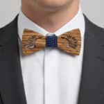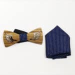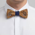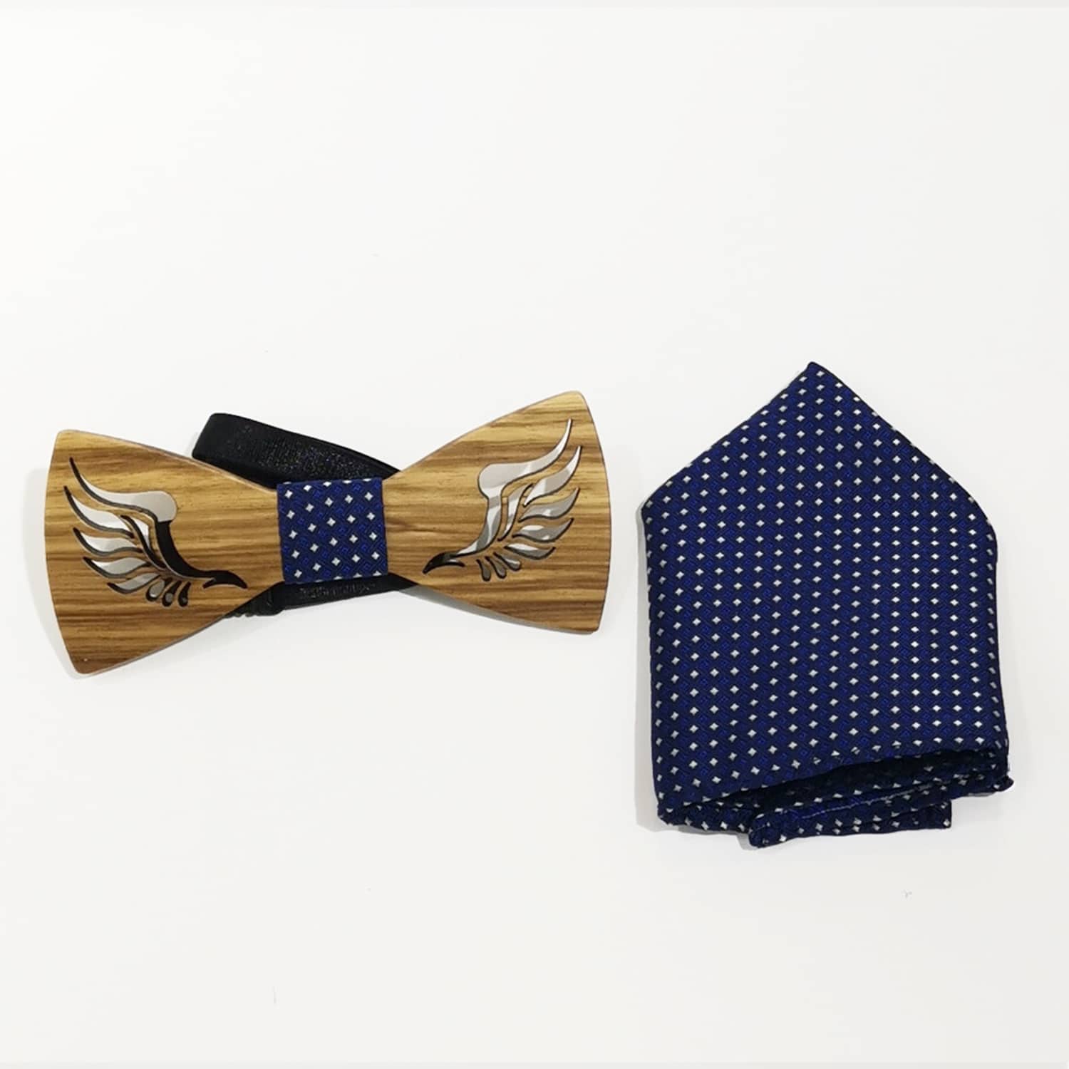 Комбинацията от топло дърво и тъмносин текстилен акцент с фина шарка прави този аксесоар изискан избор за всеки джентълмен с вкус към нестандарното.