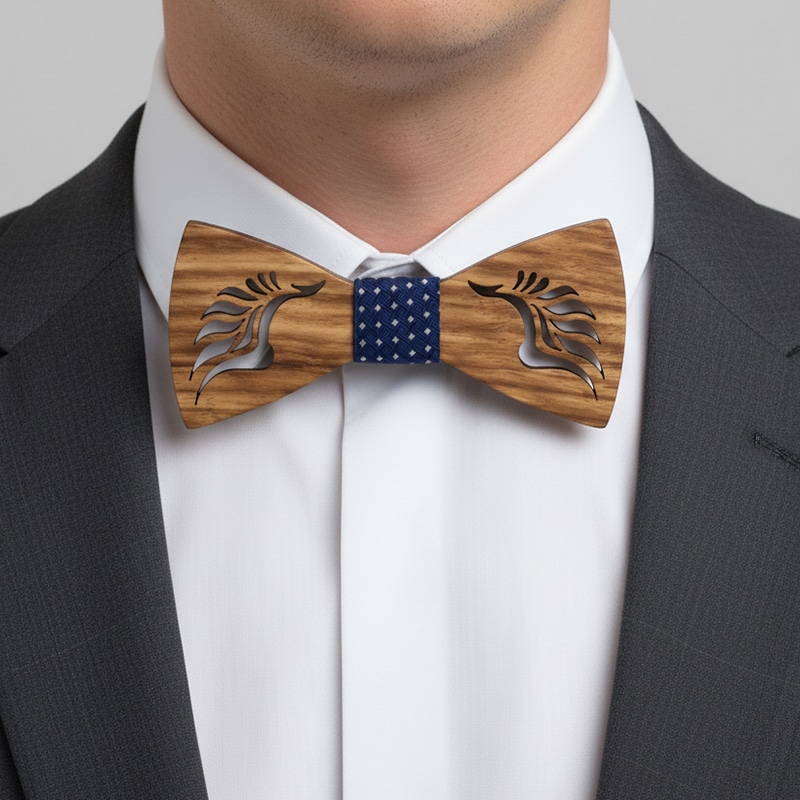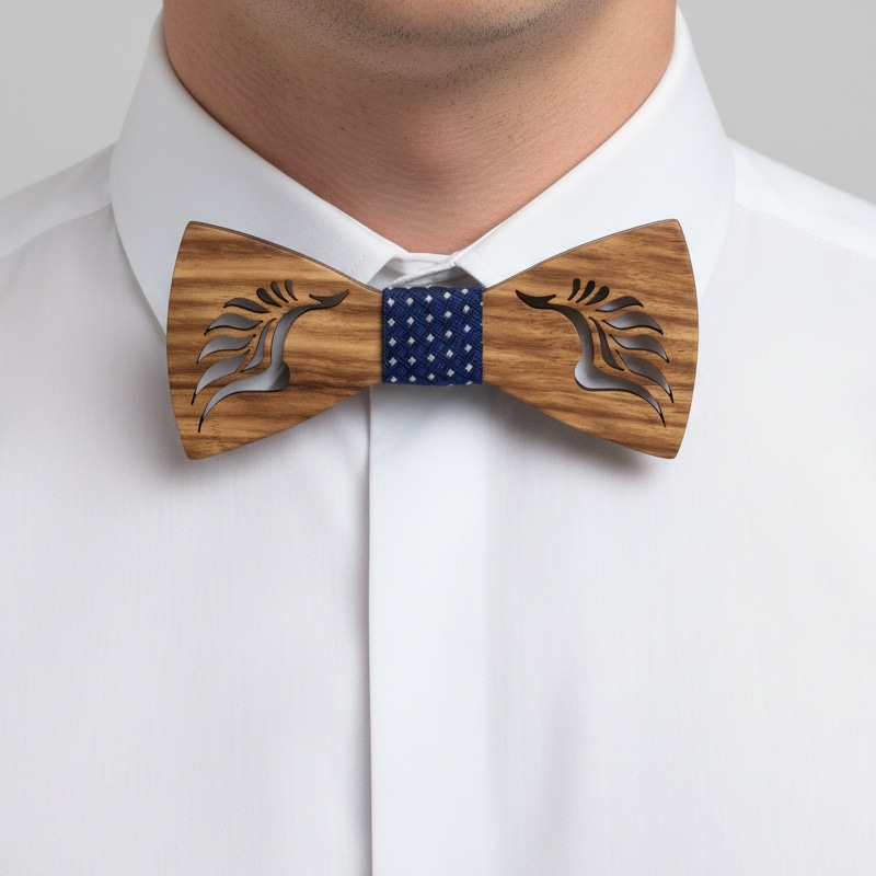 Олицетворение на елегантност и артистичен стил, папионката впечатлява с изящна дърворезба, вдъхновена от оперения разкош на пауна.