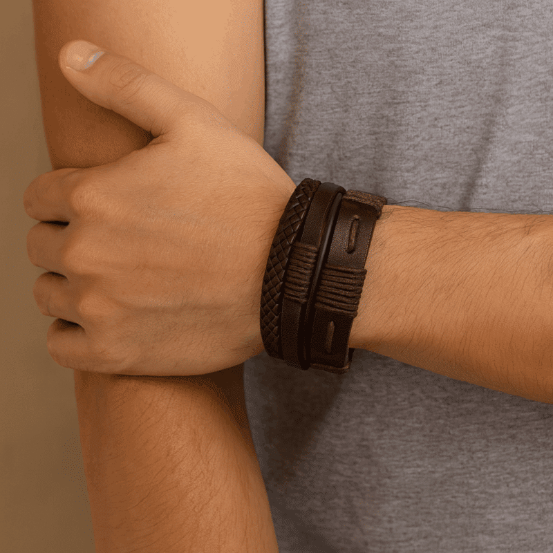 Открои се с тази модерна мъжка гривна, изработена от висококачествена синтетична кожа. Съчетанието от плетени и гладки ленти създава уникален и мъжествен дизайн, подходящ както за ежедневието, така и за специални поводи. Регулируема и удобна – гривната е съвършеният завършек на всяка визия.