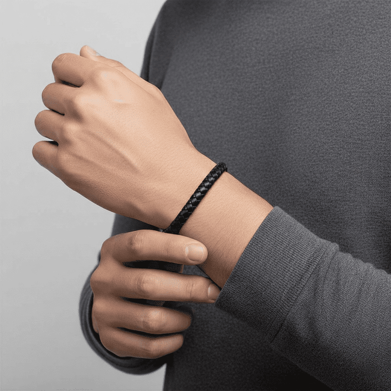 Изчистена, но въздействаща, тази плетена гривна от естествена кожа излъчва класическа мъжественост и непреходен стил. Сигурното магнитно закопчаване и удобният дизайн я правят перфектен завършек за всяка визия – от ежедневна до официална.