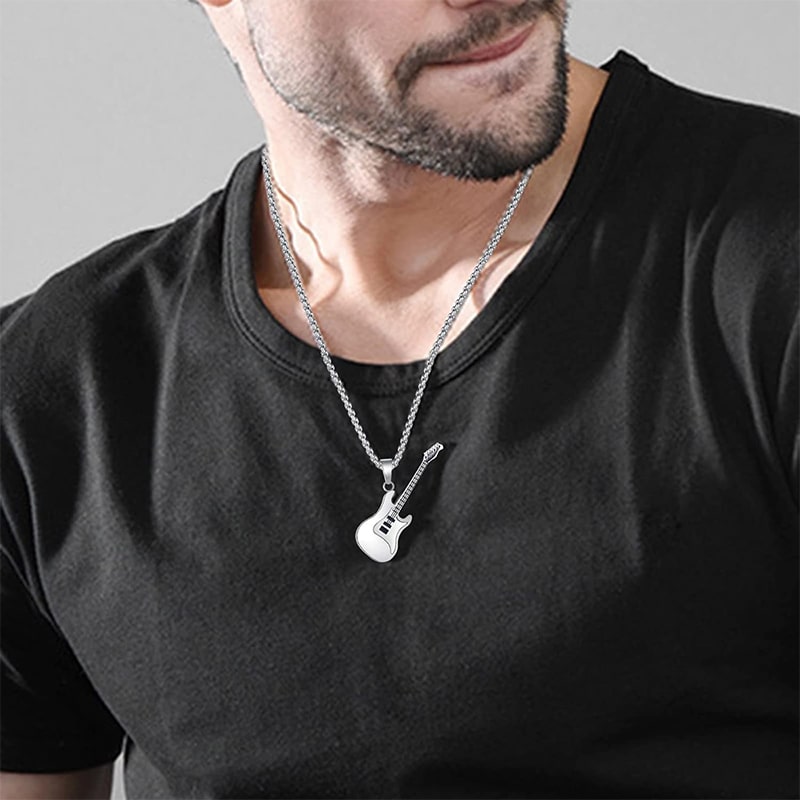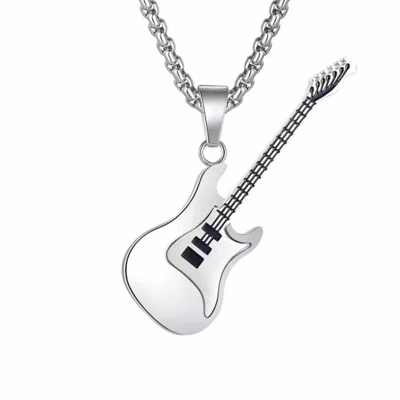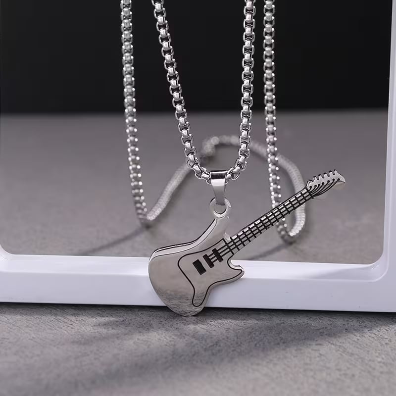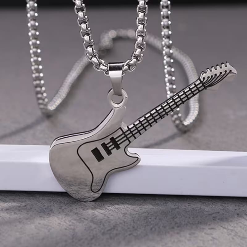 Елегантно колие със сребрист медальон във форма на китара – фин символ на любовта към музиката и свободния дух. Изчистеният дизайн и компактната форма го правят подходящо за ежедневно носене и лесно съчетаване с различни стилове.