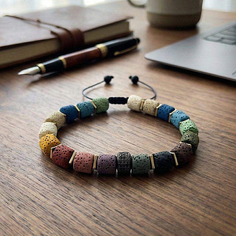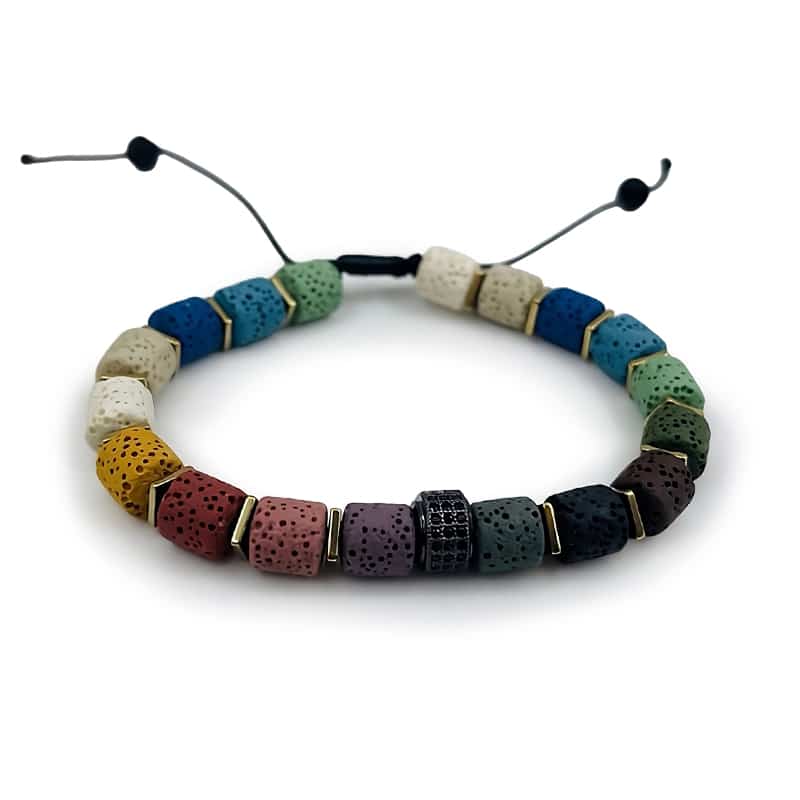 Изразете своята индивидуалност с гривната Лава Спектрум – ръчно изработена от естествени вулканични камъни с пореста текстура и уникален многоцветен дизайн. Всеки камък носи свой характер и цвят, създавайки усещане за енергия, свобода и баланс.