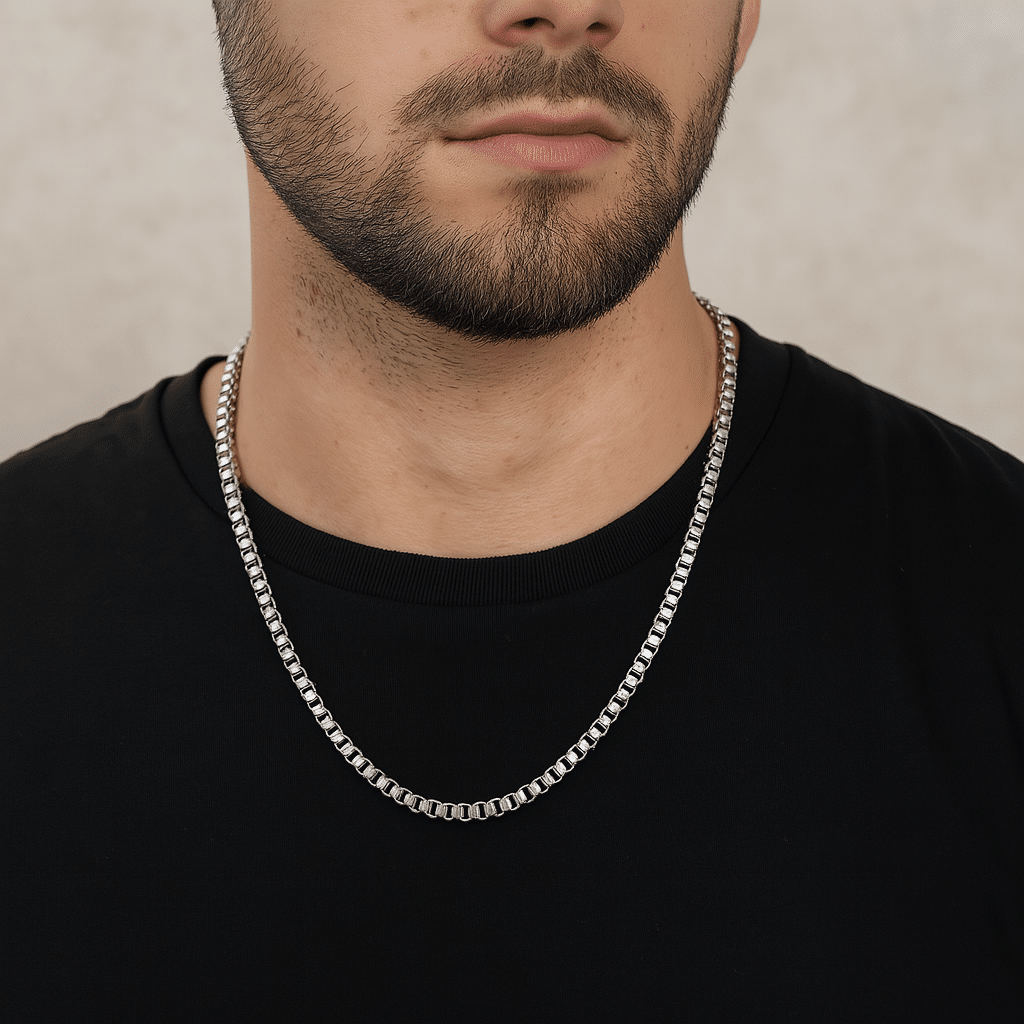 Мъжки синджир от стомана. Излъчва сила, увереност и модерен стил – идеалният избор за мъже, които носят характера си със стил.