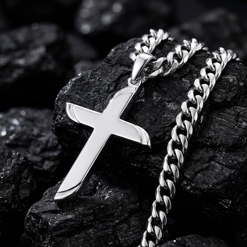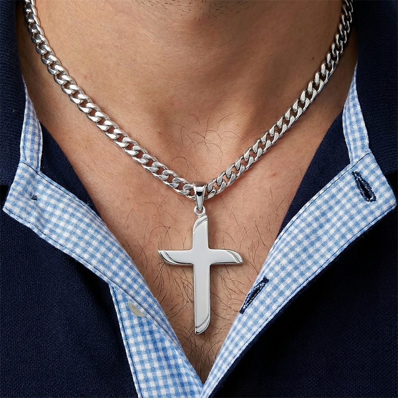 Символ на вътрешен мир и духовна сила, този сребърен кръст впечатлява със своите меки линии и изчистена форма. Деликатните гравюри в ъглите му придават усещане за елегантност. Идеален аксесоар за тези, които ценят семплия стил със значение.