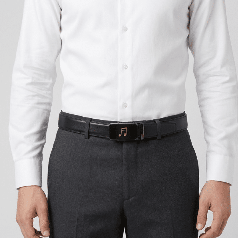 Maestro е мъжки автоматичен колан от 100% естествена кожа, създаден за ценителите на музиката и елегантния външен вид. С ширина 3.5 см и гравирана златиста музикална нота върху токата, този аксесоар се откроява със своя характер и индивидуалност. Благодарение на автоматичната закопчаваща система без дупки, дължината се регулира лесно и прецизно – за максимален комфорт всеки ден.