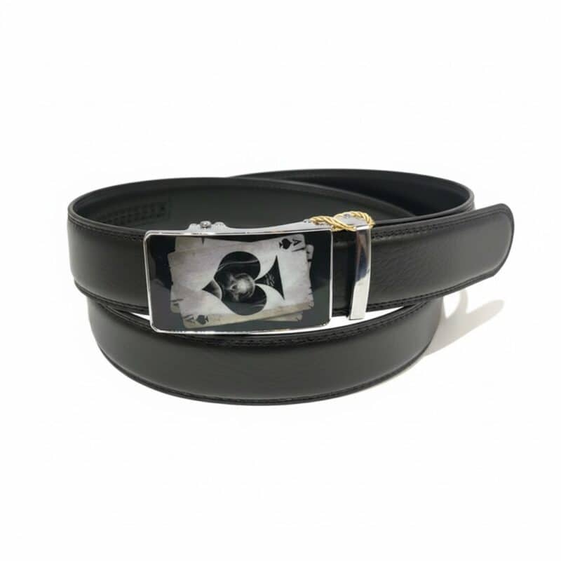 Добавете доза характер и индивидуалност към своя стил с впечатляващ мъжки колан от 100% естествена кожа с автоматична тока и детайл на карта асо пика. Идеален избор за мъже с бунтарски дух или просто афинитет към нестандартни аксесоари.
