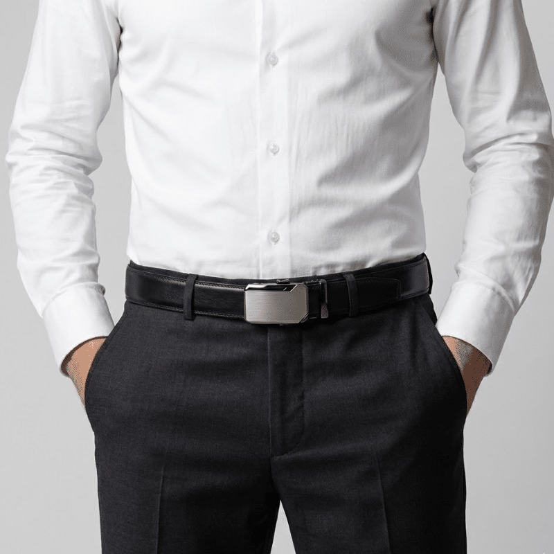 Изчистен стил и здравина в едно. Мъжки колан с автоматична тока в титаниево сиво – без дупки, с лесно регулиране и премиум усещане. Подходящ за елегантна визия, официални поводи или ежедневно носене с класа.